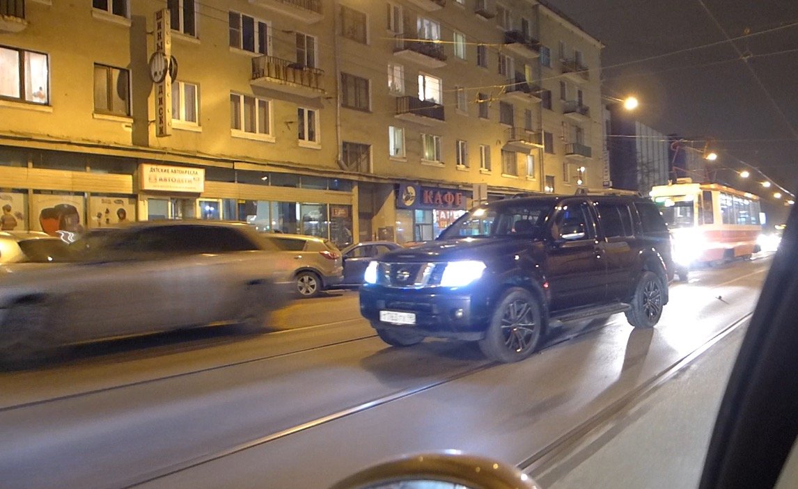 По трамвайным путям как раз и мчался внедорожник "Ниссан Патфиндер". Произошло касательное столкновение автомобилей. Движение трамваев остановилось до приезда наряда ГИБДД. Судя по всему, никто не пострадал.