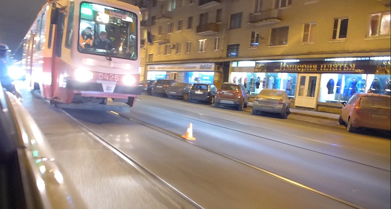 ДТП на трамвайных путях случилось вечером в среду на перекрестке Лесного проспекта и Нейшлотского переулка. Похоже, что водитель автомобиля Hyundai Solaris предпринял попытку повернуть налево на Нейшлотский, не убедившись в том, не едет ли кто по трамвайным путям?