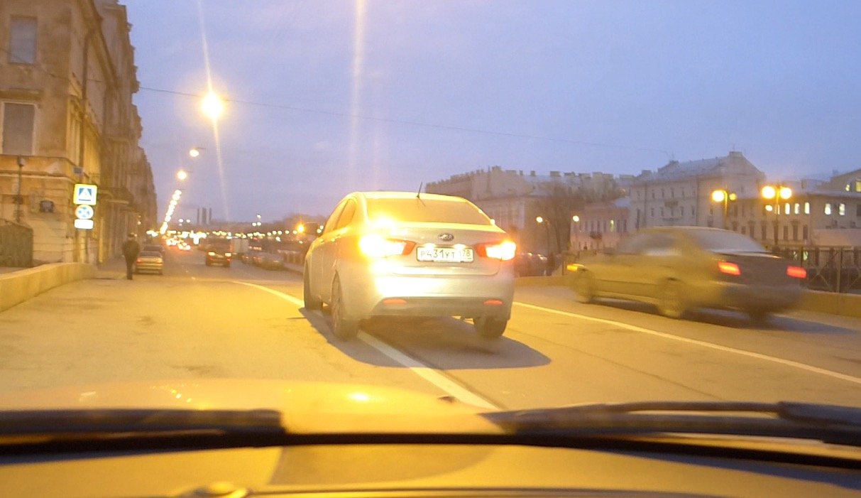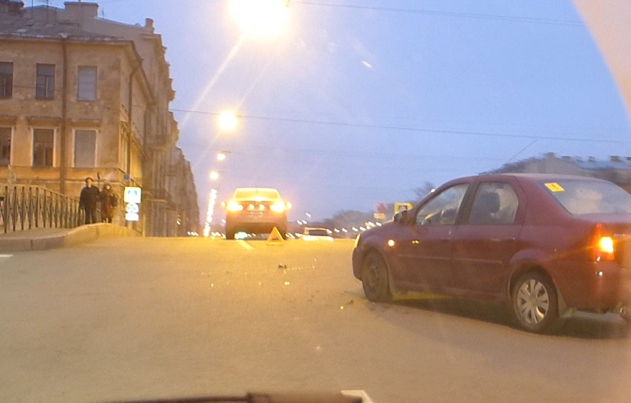 ДТП произошло на набережной реки Фонтанки на ее пересечении с набережной Крюкова канала. Судя по расположению аварийных автомобилей, девушка на Renault Logan попыталась повернуть налево из правого ряда, не увидев при этом ехавшего здесь же автомобиля KIA.