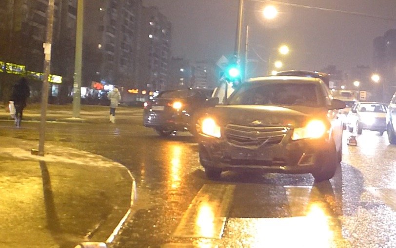 Авария на пересечении улицы Брянцева и проспекта Просвещения произошла вечером в субботу на проезжей части. Водители автомобилей Kia Optima и Chevrolet Cruze не пропустили друг друга и допустили перпендикулярное столкновение машин.