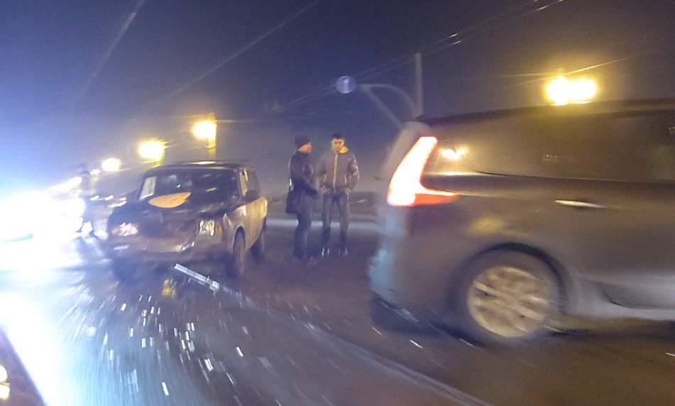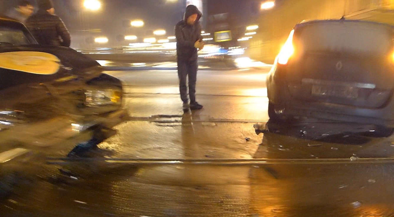 Подобные ДТП стали случаться здесь с завидной регулярностью и представляют собой серьезную опасность для невнимательных или просто неопытных водителей. В темное время суток в условиях массовой загрязненности автомобильной оптики и плохой видимости неожиданно тормозящий перед тобой автомобиль там, где этого не ждешь, является серьезной угрозой. В данном случае водитель и пассажир ВАЗа оба ударились головами о лобовое стекло. В ДТП автомобили получились серьезные повреждения кузовов.