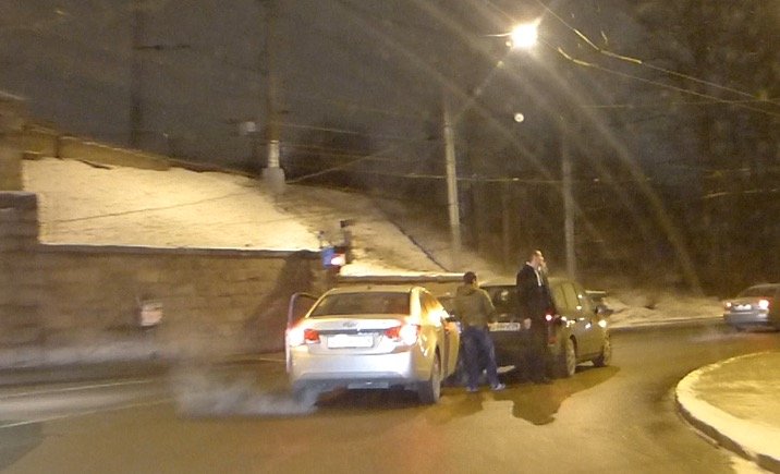 Досадное ДТП произошло вечером в субботу на Лесном проспекте: два легковых автомобиля, в процессе совершения левого поворота с Лесного проспекта на Второй Муринский проспект не смогли правильно рассчитать траекторию поворота и навалились друг на друга. В хэтчбэке за рулем была женщина и, скорее всего, случилось следующее: женщина затормозила перед пешеходным переходом, в то время как водитель ехавшего за ней следом автомобиля Chevrolet не среагировал на торможение и врезался в заднюю часть хэтчбэка.