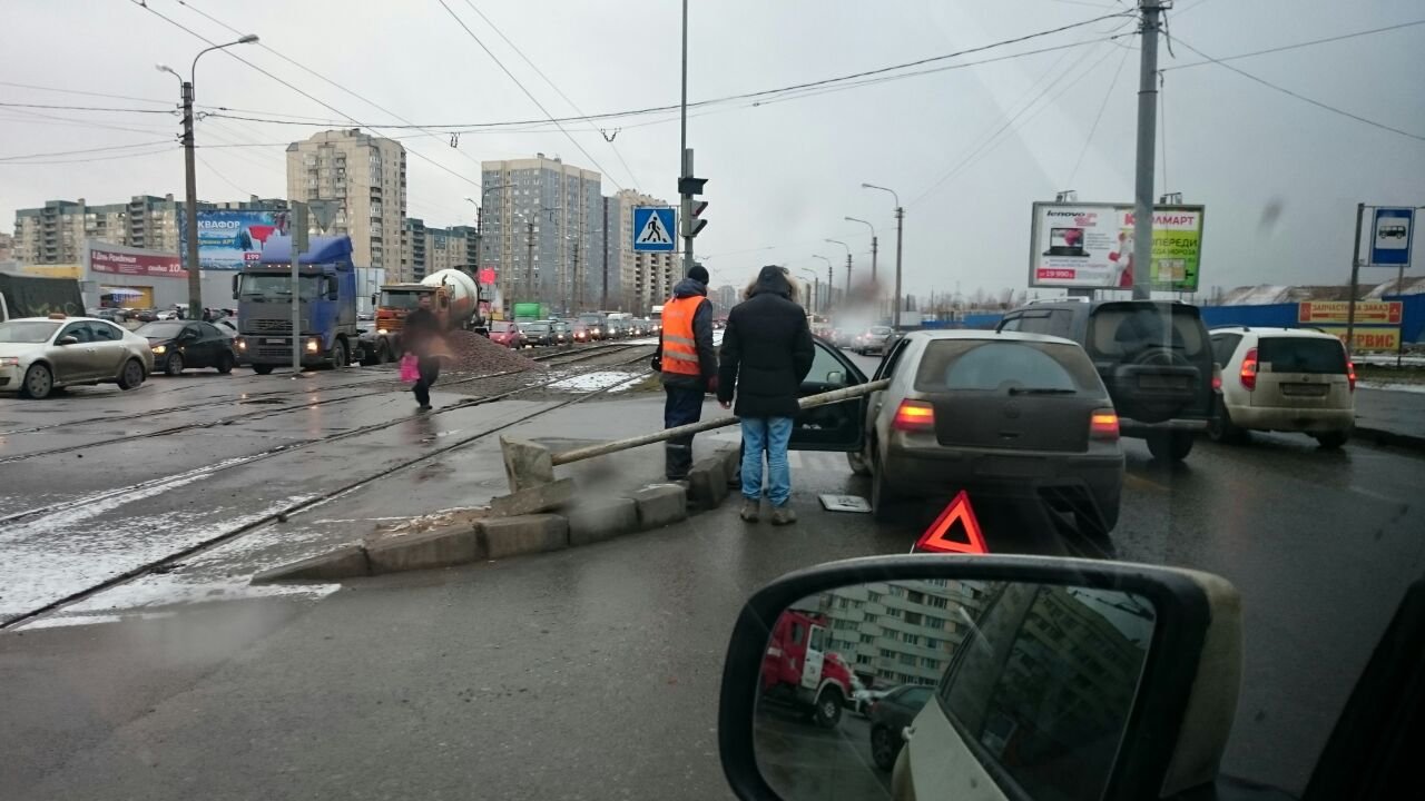 На проспекте маршала Казакова в Санкт-Петербурге столб упал в автомобиль