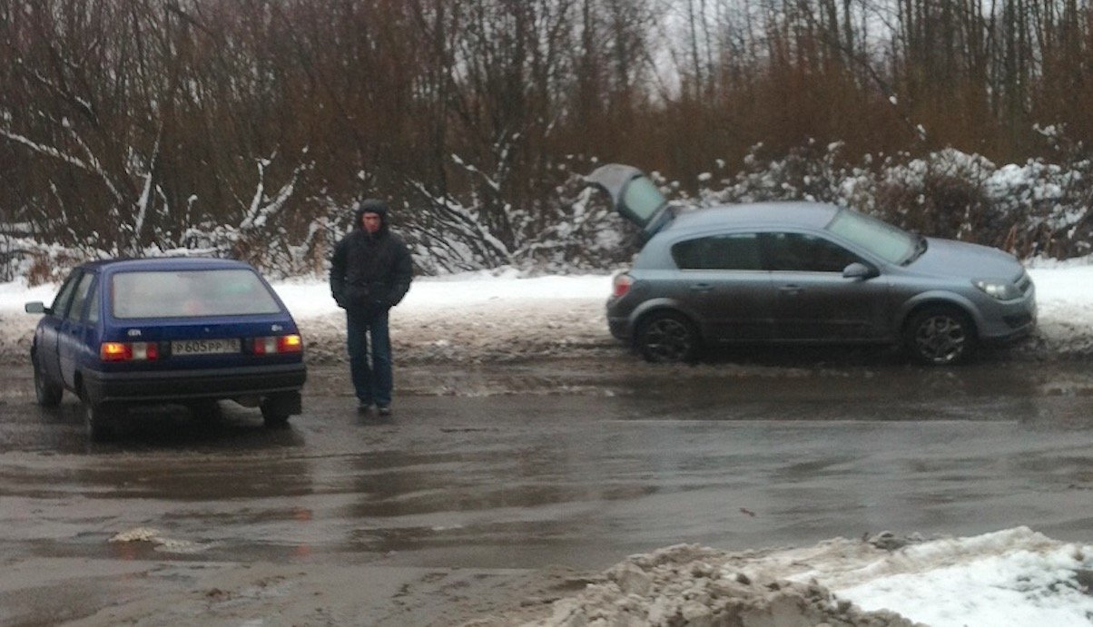 Два легковых автомобиля не пропустили друг друга и столкнулись на улице Тамбасова днем 31-ого декабря 2014 года. Один из участников событий - автомобиль ИЖ Ода перегородил собой проезжую часть. Второй участник - Opel Astra вылетел на обочину. Люди, по счастью, не пострадали.