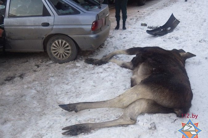 В Белоруссии два автомобиля разбились в столкновении с огромным лосем