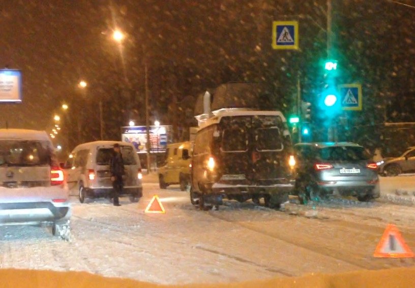 Первая авария– столкновение микроавтобуса Газель микро-фургона случилась неподалёку от перекрёстка Выборгского шоссе с проспектом Луначарского. А вторая авария с участием белого пикапа произошла на въезде на Поклонную гору с Выборгского шоссе. В этих конкретно, как и в очень многих других ситуациях в это утреннее время в Петербурге, люди не пострадали, ввиду небольших скоростей автомобилей, едущих в условиях снежной каши.