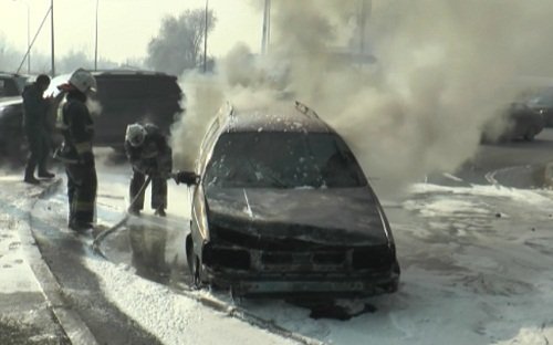 В Алматы легковой автомобиль загорелся во время движения. Водитель успел выпрыгнуть