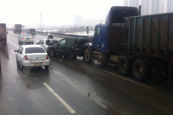 В аварии на Киевском шоссе повреждения получили несколько десятков автомобилей.