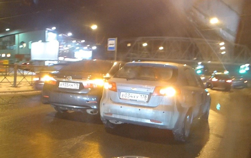 На Лесном проспекте два легковых автомобиля навалились друг на друга