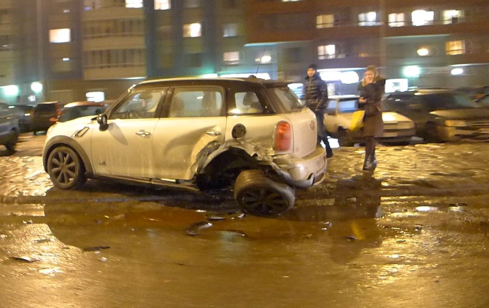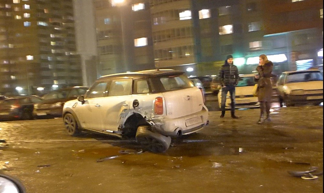 Mini Cooper разбился в Петербурге на улице Доблести в вечером в пятницу