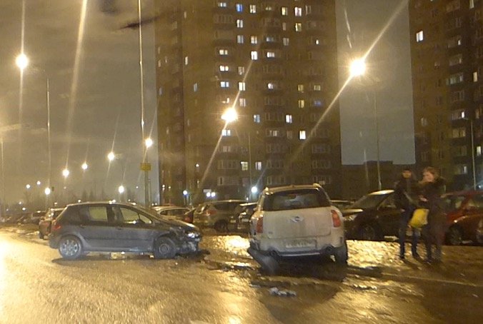 Судя по силе удара, очевидно, что машины столкнулись на приличной скорости, и, скорее всего, кто-то из участников ДТП просто не увидел маневр другого. Возможно это была неожиданная попытка развернуться или повернуть с проезжей части на дворовую территорию. Никто не пострадал.
