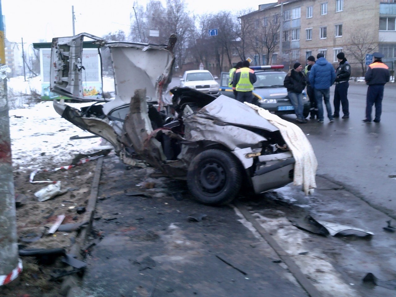 Ужасная автоавария под Киевом произошла 21 февраля на перекрестке улицы Кирова в поселке городского типа Чабаны (Киево-Святошинский район). От столкнувшихся автомобилей Lexus и Skoda практически ничего не осталось.