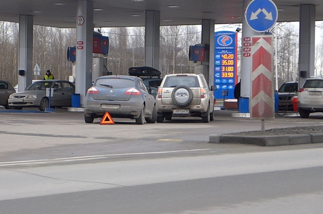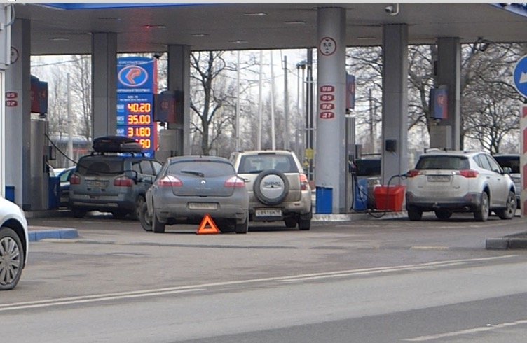 Спешка при попытке первым подъехать к заправочному пистолету.