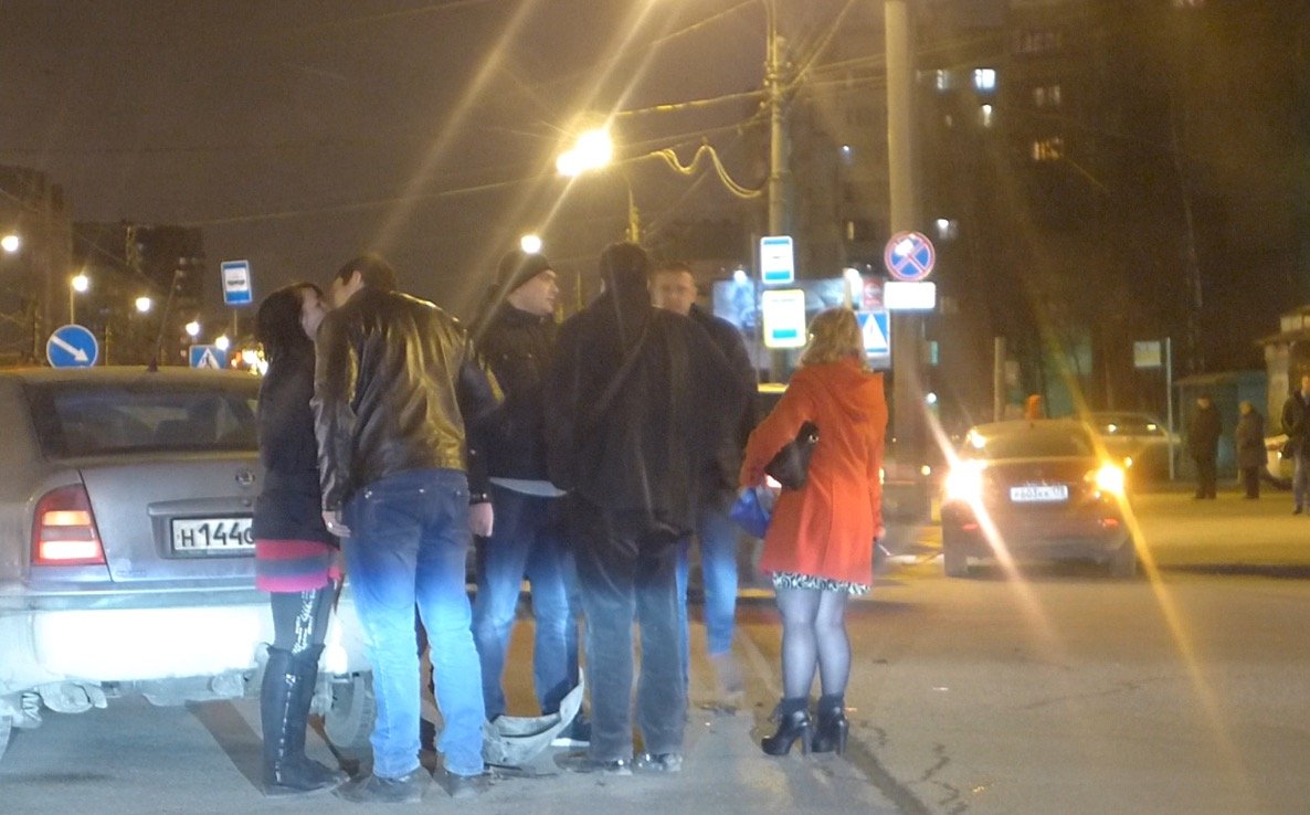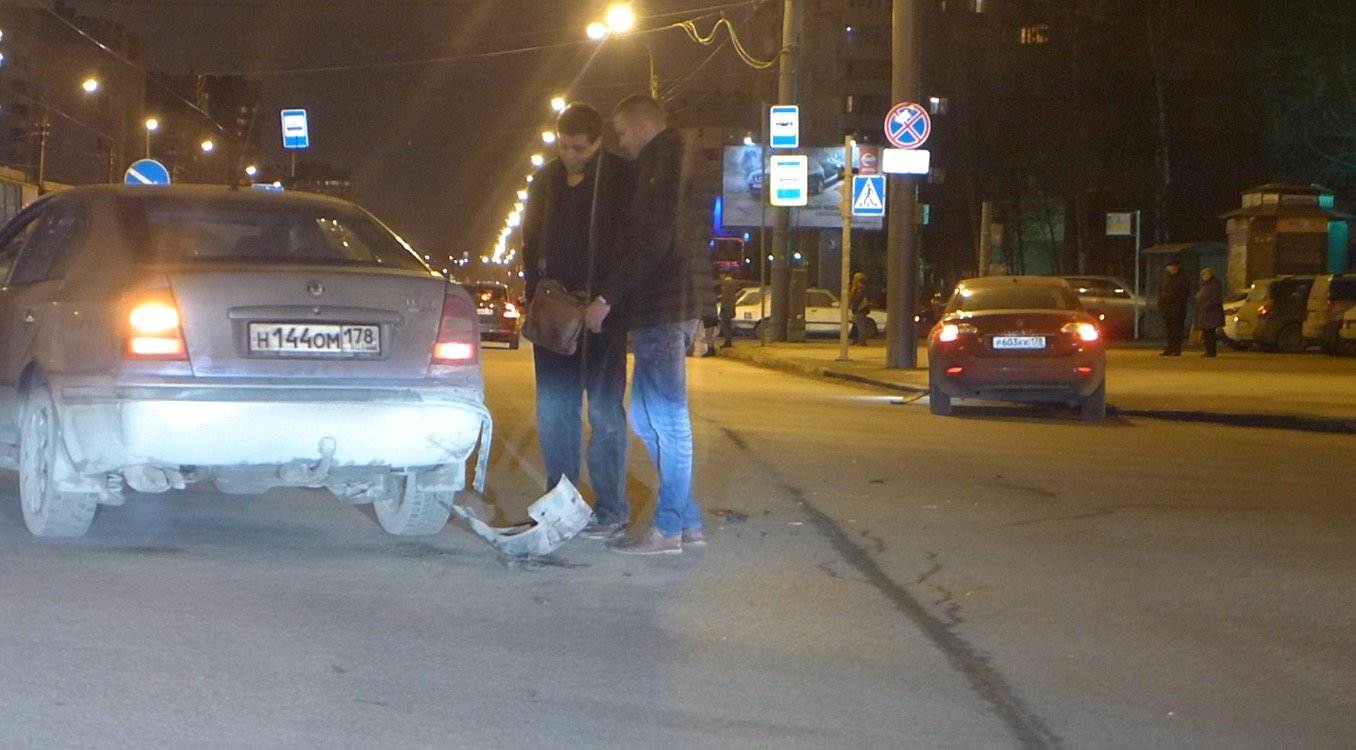 От сильного кастельного удара у обоих автомобилей отлетели части бамперов. В "Шкоде", судя по всему как в такси, ехала компания молодежи, которая почти сразу ушла с места аварии ловить другой автомобиль.