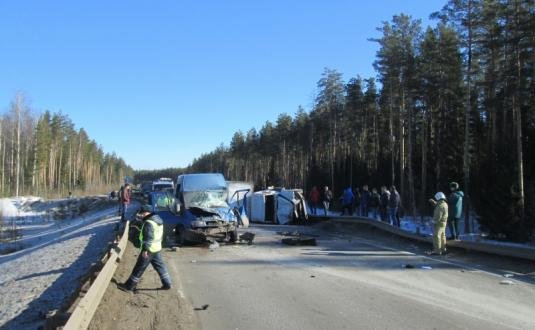 Причины аварии устанавливаются. По предварительным данным, водитель ГАЗа не справился с управлением и въехал в остановившийся автомобиль «Мазда», который от удара отбросило на встречный «Форд Транзит». Автомобиль ГАЗ также столкнулся с попутным автомобилем «Газель». От удара оба автомобиля перевернулись.