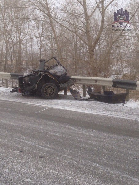 В аварии под Красноярском напополам разорвало иномарку
