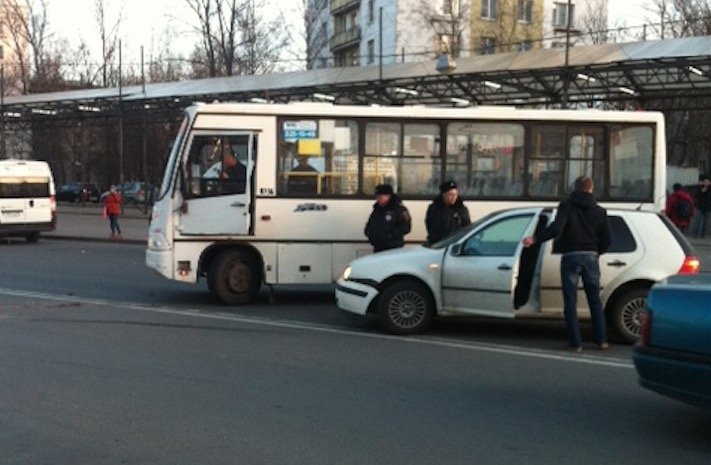 Сразу две аварии с участием маршрутных микроавтобусов случились вечером в четверг на проспекте Ветеранов. Пострадал автомобиль Volkswagen Golf у которого в результате столкновения оторвался передний бампер.