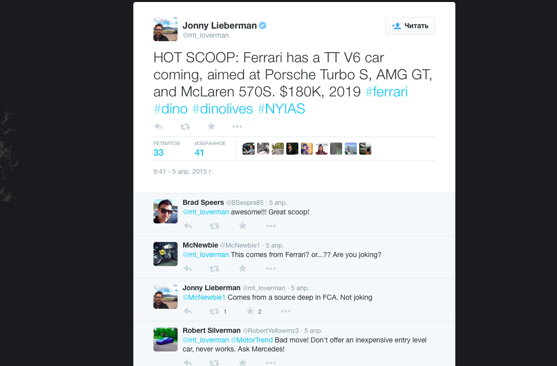 Для сравнения, дебютировавший на автосалоне в Нью-Йорке McLaren 570S, с которым будущий спорткар от Ferrari и будет соперничать, приводится в движение 3,8-литровым турбомотором мощностью 570 лошадиных сил. Среди других моделей, конкурировать с которыми будет новая итальянская модель, отмечаются Mercedes AMG GT и Porsche 911 Turbo S.