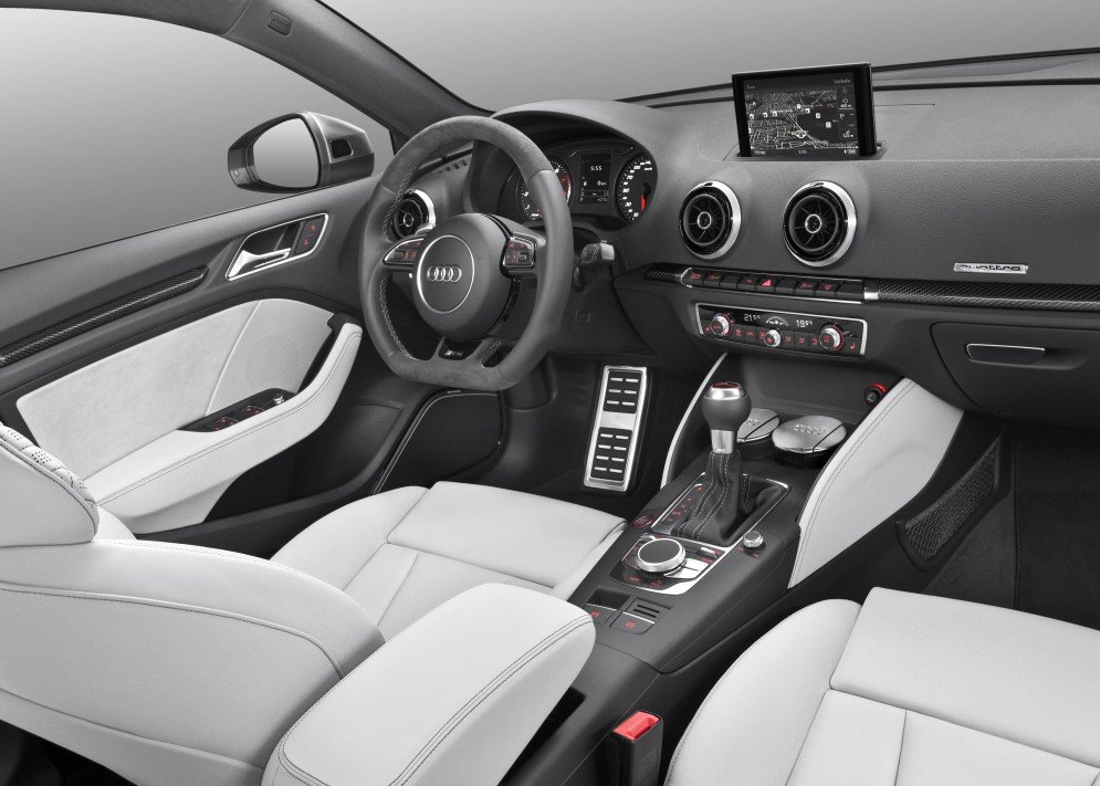 Audi RS 3 Sportback имеет бифункциональные ксеноновые фары. В стандартной комплектации имеет двухзонный климат-контроль, сиденья, обтянутые кожей Feinnapa, спортивную подвеску, парковочный ассистент с задним и передним парктрониками и информационно-развлекательную систему MMI. Также стандартная версия предполагает 19-дюймовые легкосплавные диски с шинами 235/35 R19.