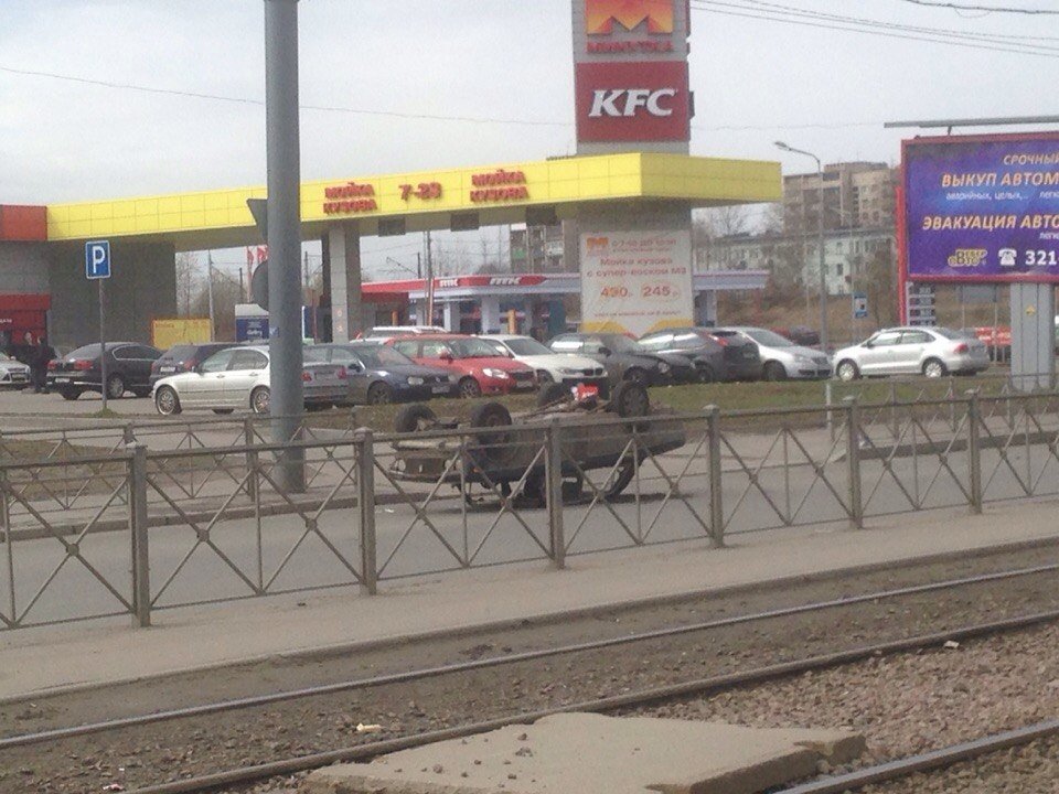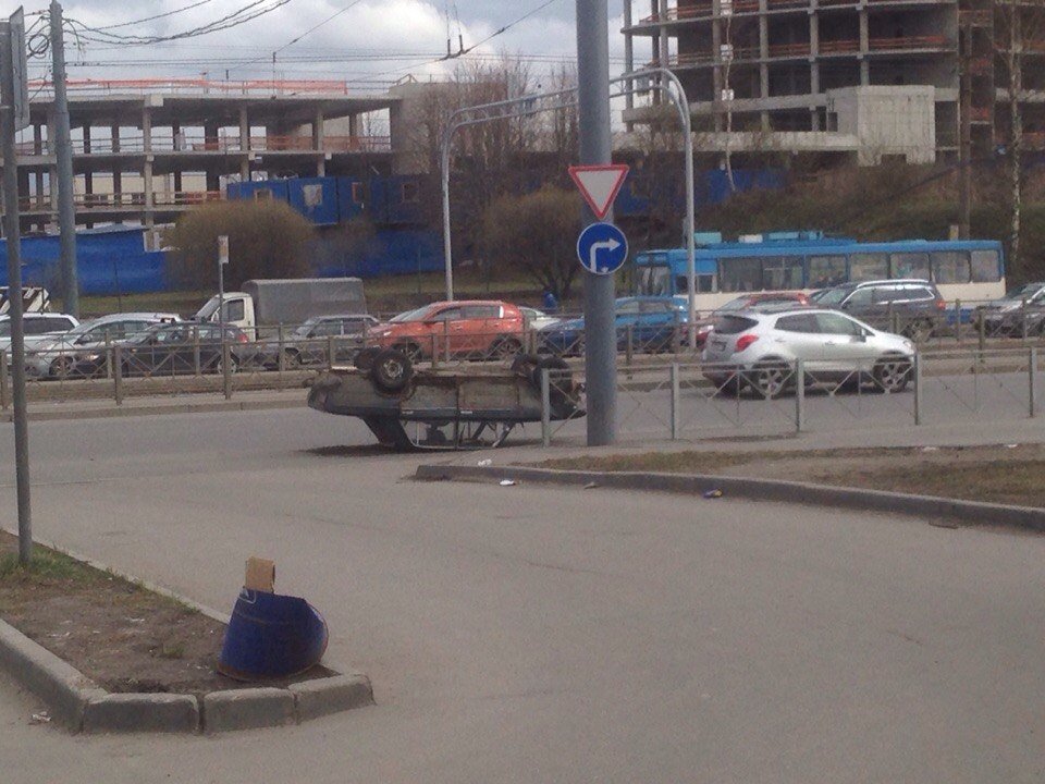 Перевернувшиеся жигули до сих пор лежат на Дальневосточном проспекте