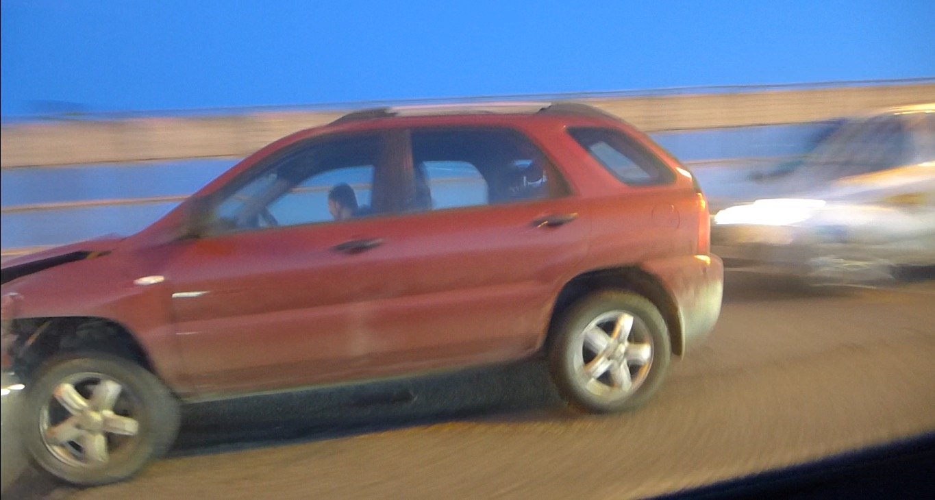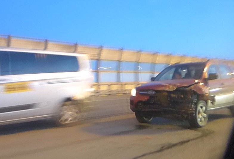 Вечером в субботу на КАД (внешнее кольцо) произошло ДТП. Судя по следам и повреждениям, водитель кроссовера Kia Sportage не справился с управлением и врезался в отбойник, после чего машина отлетела в средний ряд, где и остановилась. Сведений о пострадавших нет.