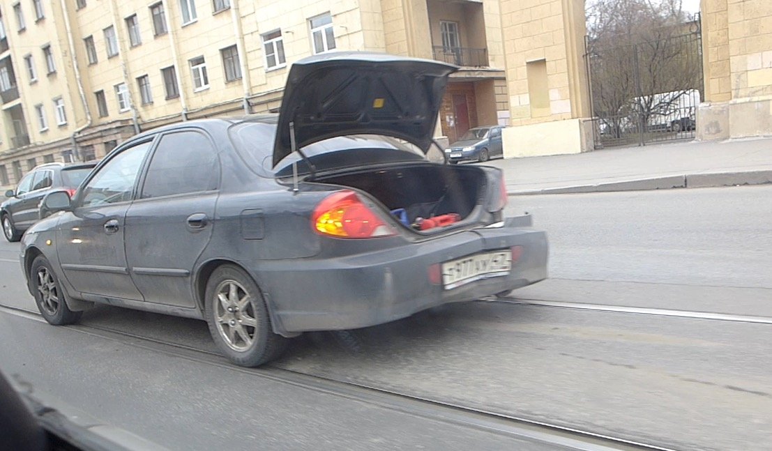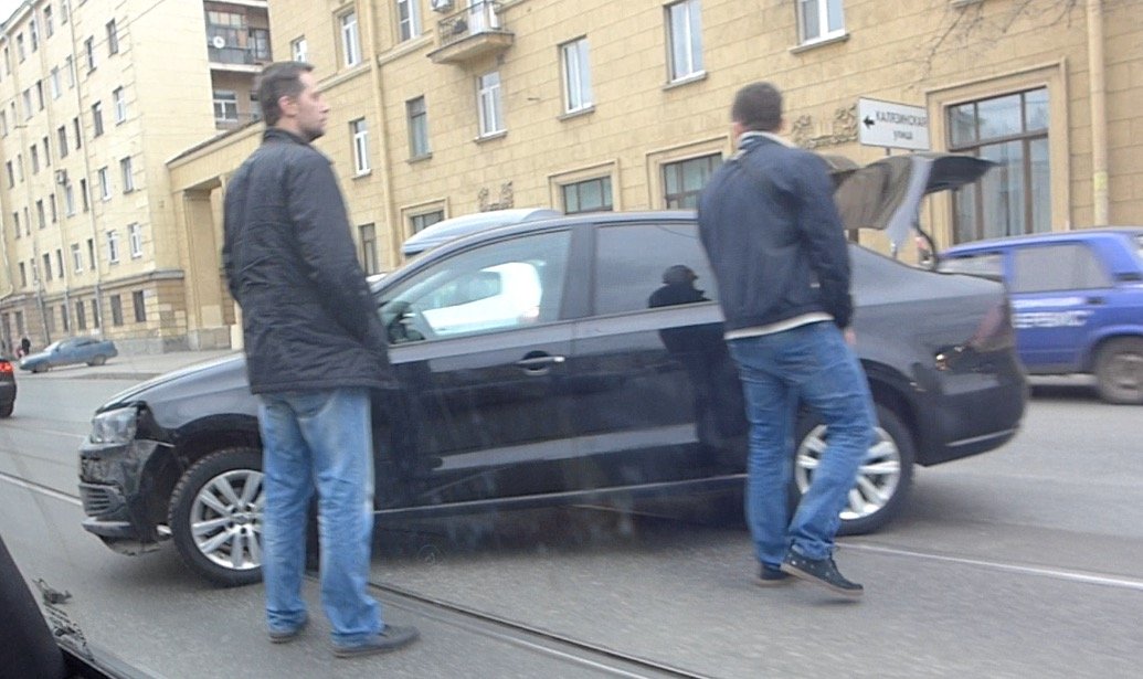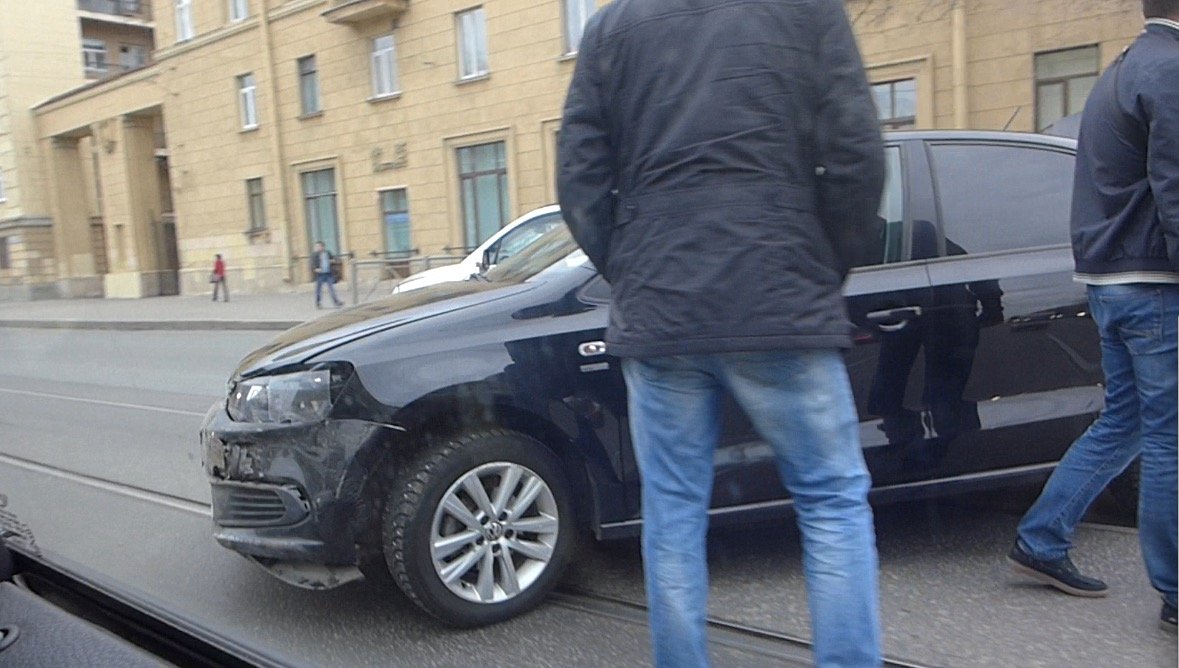 Авария случилась на трамвайных путях. Автомобиль Volkswagen сильно врезался в заднюю часть легковушки Kia Spectra. Понять ситуацию по расположению аварийных транспортных средств трудно - кто откуда выезжал и кто куда спешил, определить нельзя. Люди в аварии не пострадали.