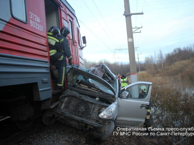 Автомобиль врезался в электричку под Ломоносовом: трое погибших