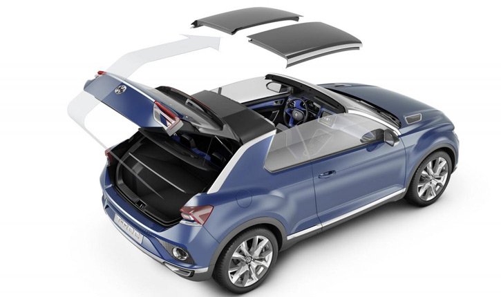 Чтобы понять, как будет выглядеть Volkswagen Golf Targa, достаточно взглянуть на концептуальный кроссовер T-ROC, представленный год назад в Женеве. Центральная часть верха прототипа состоит из двух отдельных фрагментов, которые снимаются вручную и могут храниться в специальной нише багажного отделения.