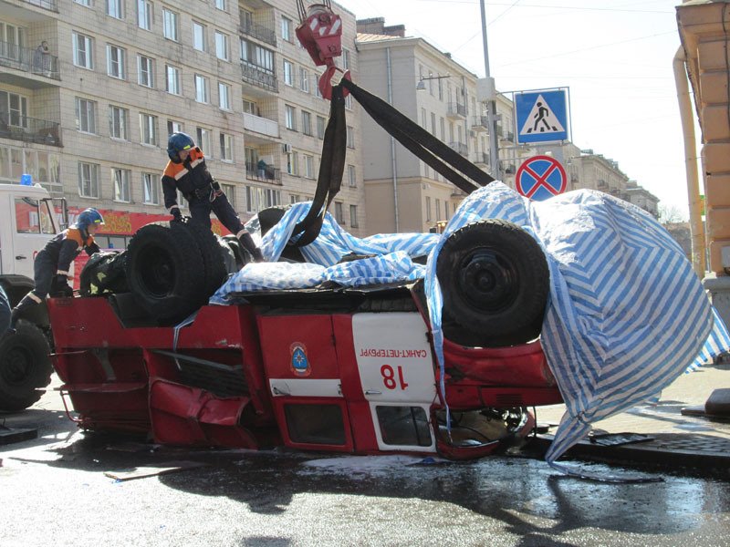 В Санкт-Петербурге перевернулась пожарная машина, есть пострадавший