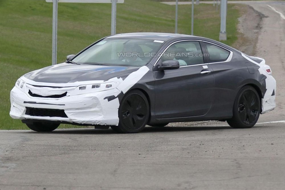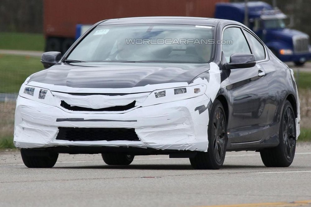 На дорожных испытаниях в Америке было заснято новое рестайлинговое купе Honda Accord. Скорее всего модель представят к концу 2015 года.