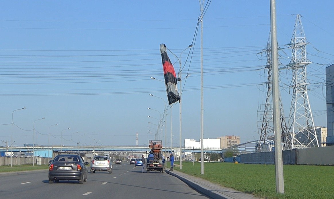 Экстремально настроенный на подвиги парашютист в процессе прыжка с трубы тепло-электростанции на Суздальском проспекте не рассчитал траекторию снижения и зацепился за осветительный столб у обочины проспекта где и повис. Молодому человеку удалось спустится по мачте освещения и скрыться с места подвига, однако через некоторое время ему пришлось появится на месте происшествия вместе с аварийной бригадой СПБ ГУП Ленсвет.