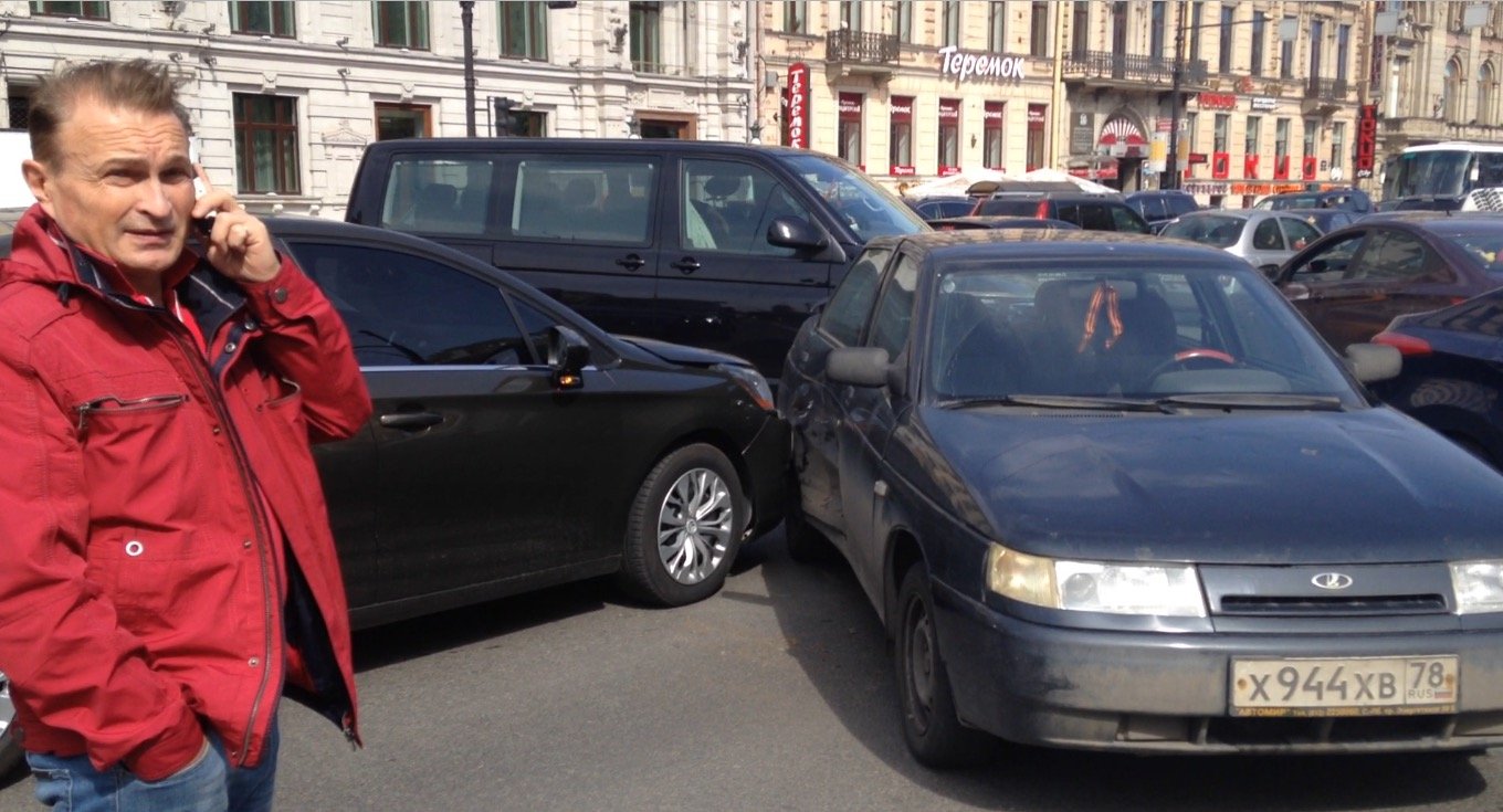 Торопливый водитель седана Citroen проехал на красный сигнал светофора и врезался в Ладу на Невском проспекте
