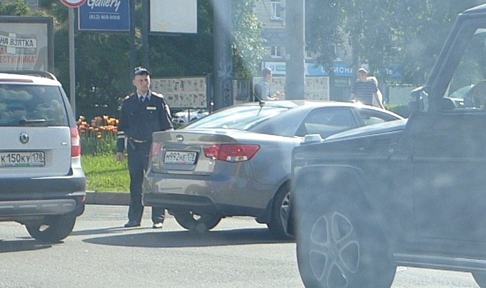 ДТП произошло прямо на глазах у многочисленной публики и у инспектора полиции, дежурившего здесь в это время на Светлановской площади по направлению движения к проспекту Испытателей.