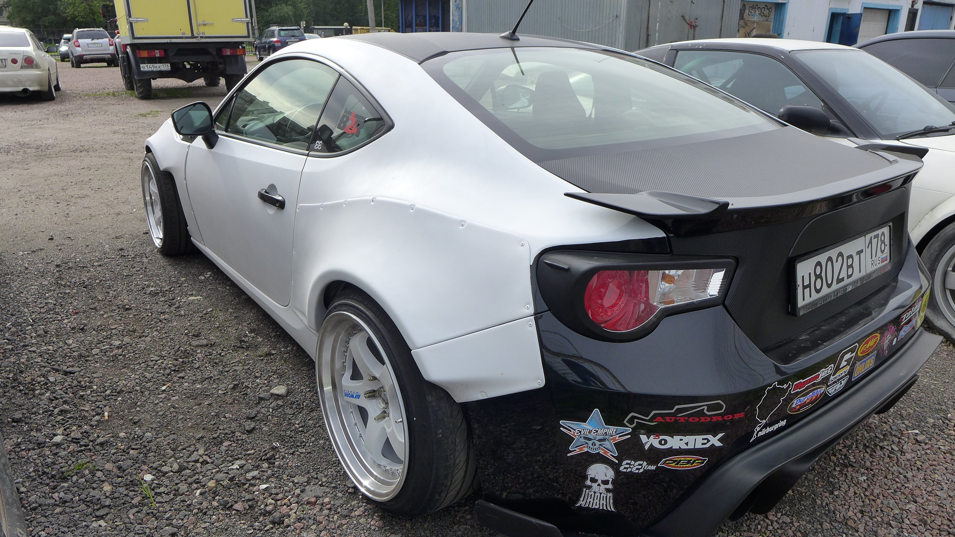 Любопытный экземпляр спортивного купе от Toyota в глубоком внешнем тюнинге удалось сфотографировать на автомобильном рынке на проспекте Энергетиков на территории одного из салонов по продажам.