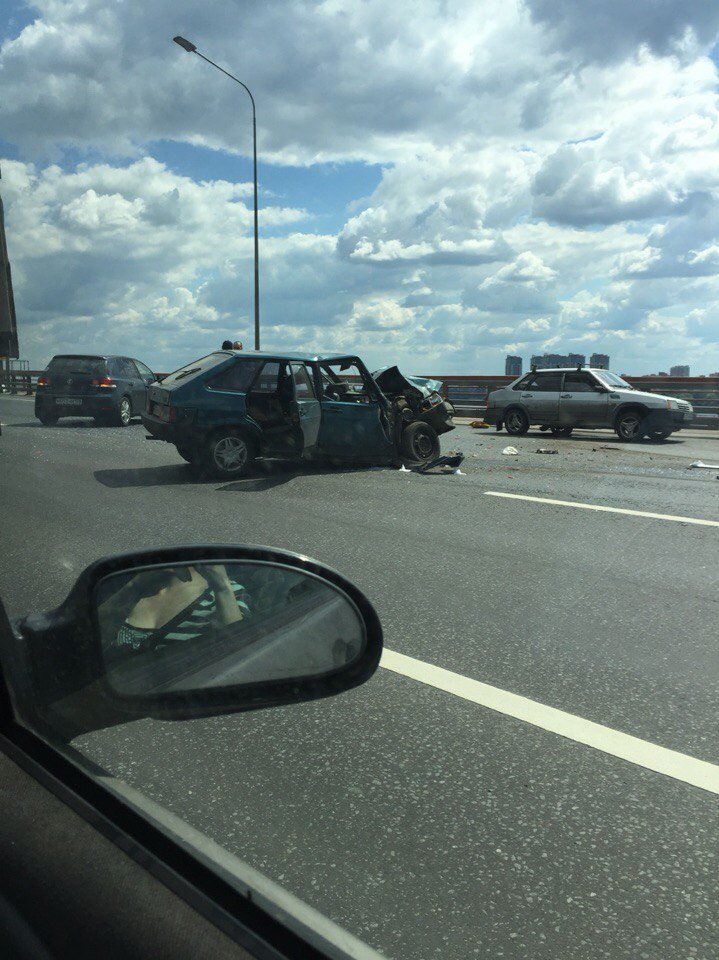 В Петербурге на КАД в результате столкновения двух автомобилей погиб водитель одной их них. На настоящий момент на вантовом мосту - пробка длиной до 6 км.