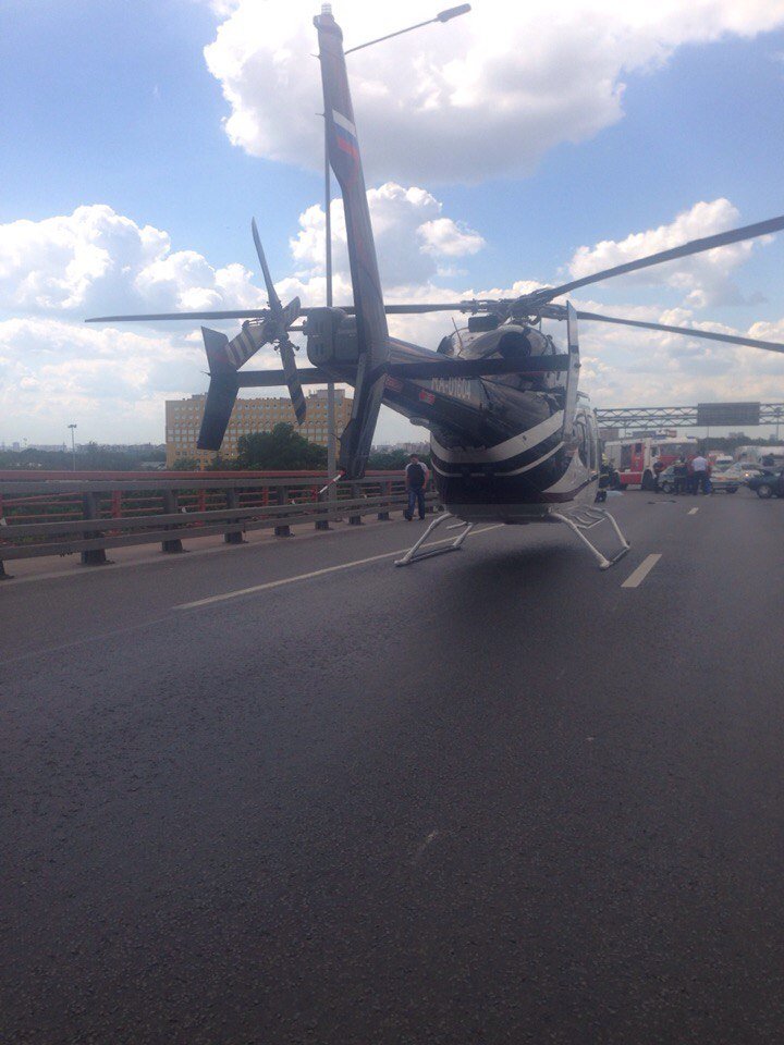 На место ДТП на вантовом мосту в Петербурге прилетал вертолет