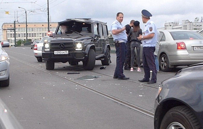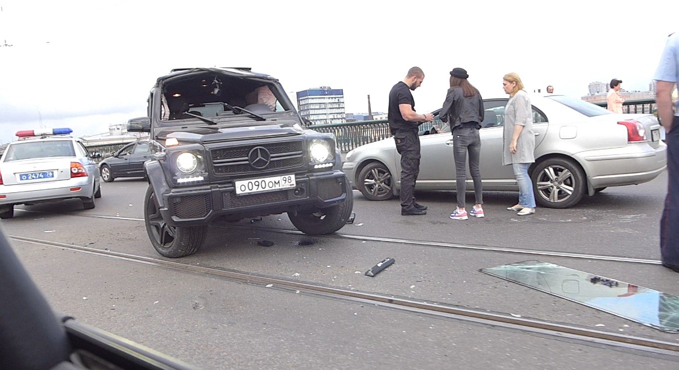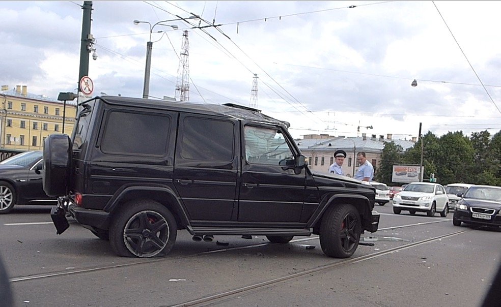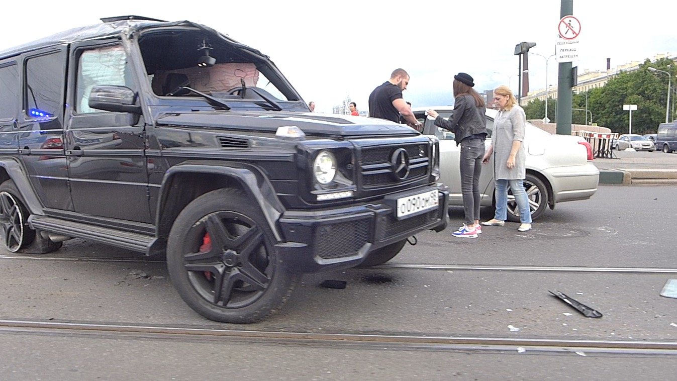 Люксовый Mercedes Benz Гелендваген, судя по всему, перевернулся на Гренадерском мосту