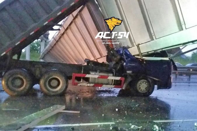 В Новосибирске самосвал снес надземный пешеходный переход – водитель погиб