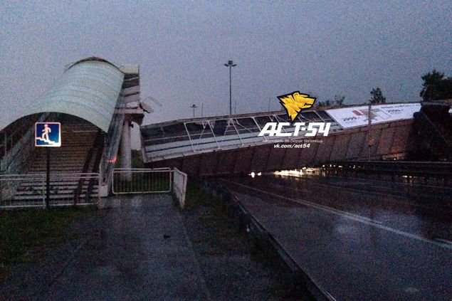 Накануне вечером, 25 июля, в районе поселка Огурцово на Советском шоссе в Новосибирске самосвал снес наземный пешеходный мост.
