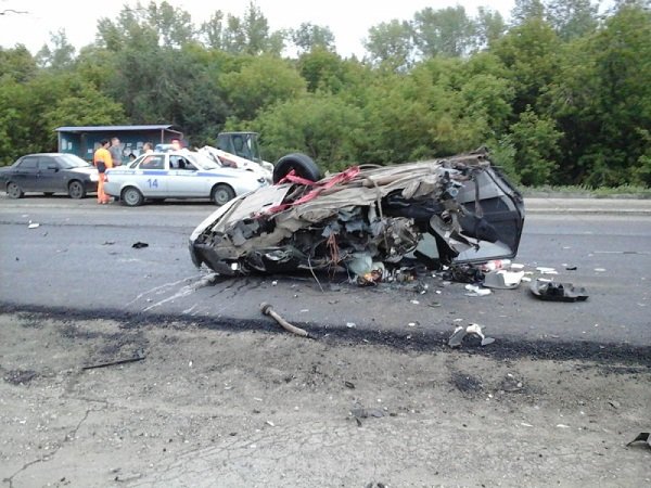 В результате аварии 22-летний пассажир легковушки погиб на месте, а водитель выпал из салона на горячий асфальт. Он получил ожоги спины и черепно-мозговую травму.