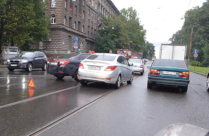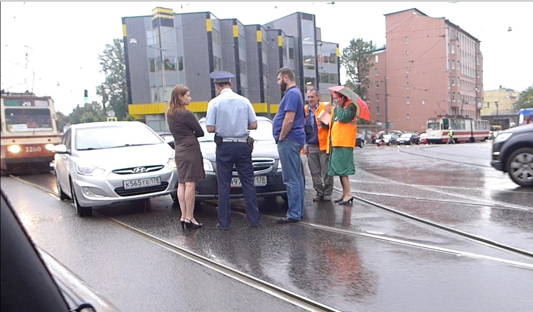 Водители не пропустили друг друга и автомобили столкнулись по касательной прямо на трамвайных рельсах. По счастью, обошлось без пострадавших. На месте ДТП остановилось движение трамваев, выстроившихся в длинную пробку по Энгельса в направлении в сторону спальных районов города.