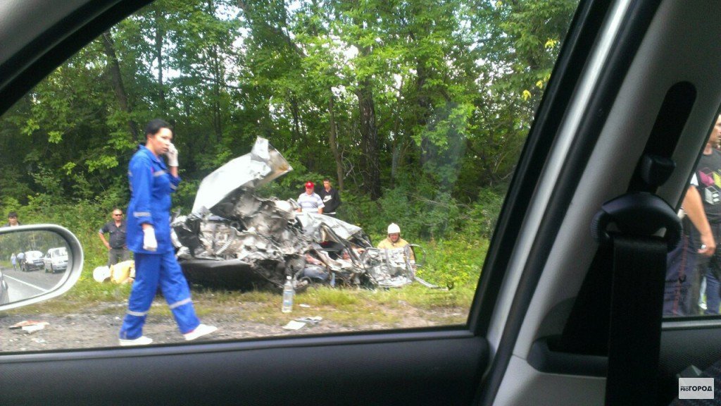 Очевидица последствий рассказывает: «Я ехала из Канаша и на трассе, не доезжая до Цивильска, увидела перевернутый МАЗ и машину, точнее груду металла, которая от нее осталась».