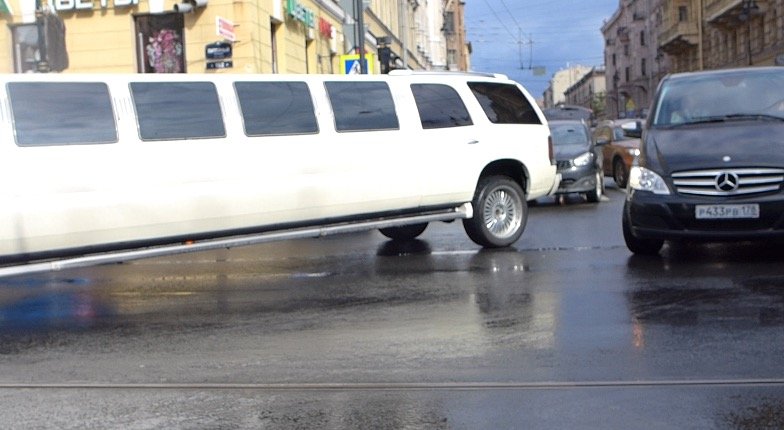 Досадное ДТП на перекрестке Литейного проспекта и Кирочной улицы произошло днем в четверг - длиннобазный свадебный лимузин, поворачивая налево с Кирочной улицы навалился на левое крыло кроссовера "Ниссан Кашкай", водитель которого попытался успеть проскочить на Литейный-же справа от лимузина