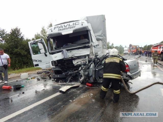 В результате аварии водитель легкового автомобиля и его пассажирка, жители Костромской области, погибли мгновенно. Водитель большегруза получил травмы и был госпитализирован.