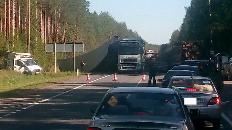 По предварительным данным, произошло столкновение шести машин, в том числе фуры и лесовоза.
