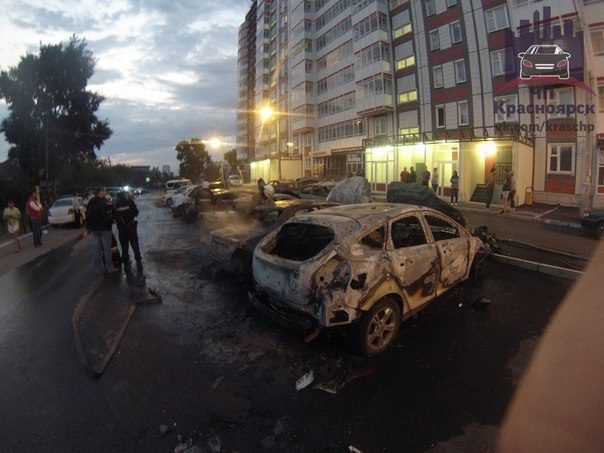 В Красноярске на парковке сгорели 7 автомобилей (фото, видео)