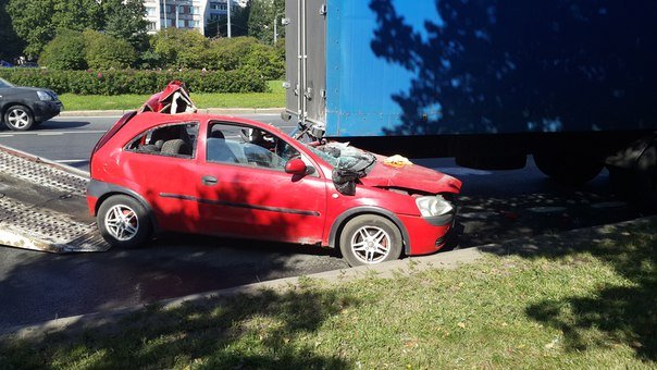 Водитель автомобиля Opel погиб, въехав в фуру на проспекте Ветеранов