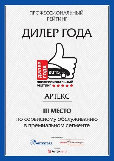 АРТЕКС – признанный лидер в области премиум-сервиса по результатам рейтинга «Дилер года»