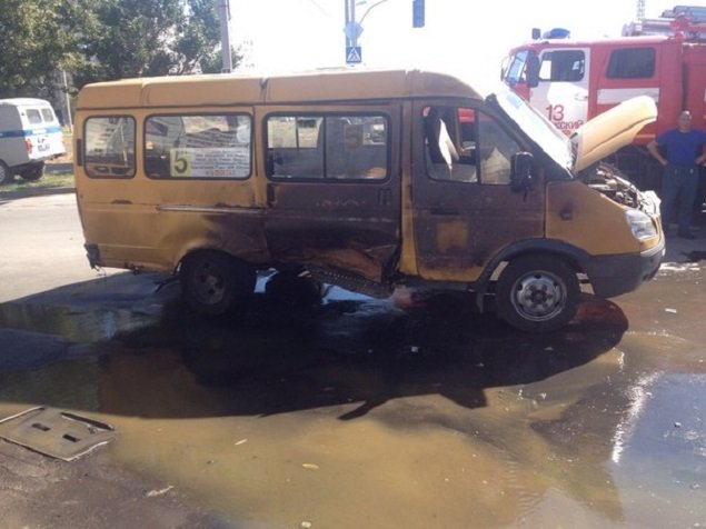 Во время поворота "Газели" налево, ее на скорости протаранил автомобиль Hyundai Accent. От удара маршрутку развернуло на дороге, после чего взорвался газовый баллон.