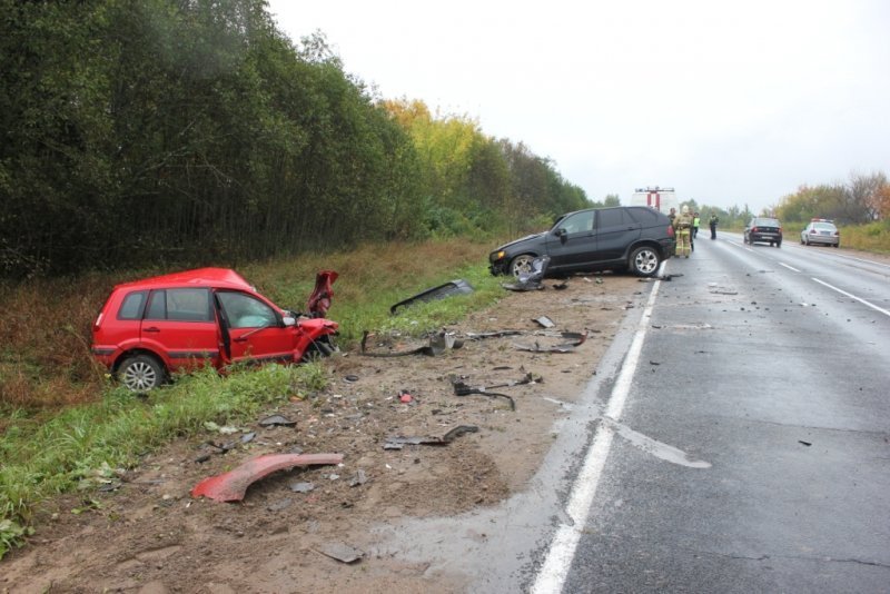 По предварительным данным, водитель BMW X5 нарушил правила обгона и врезался лоб в лоб в Ford Fusion, двигавшийся по встречной полосе.